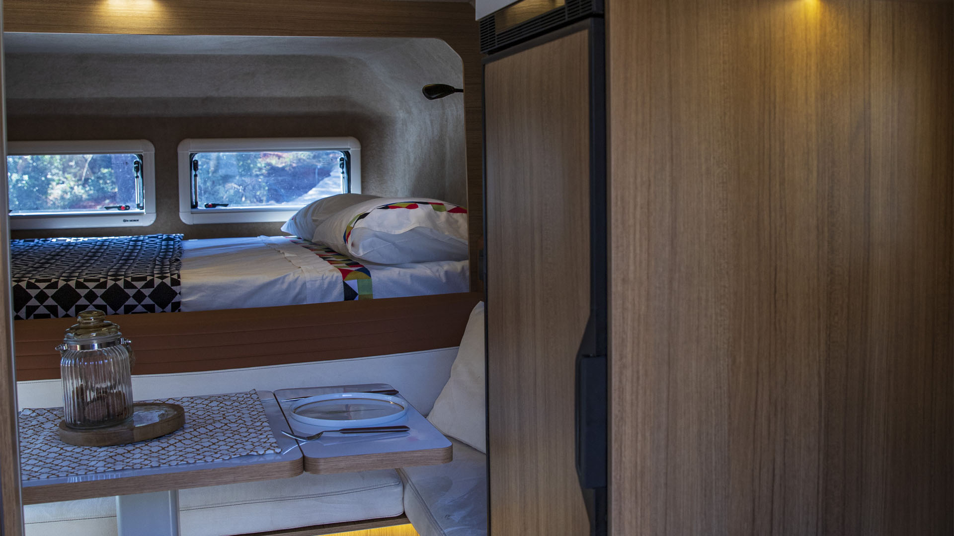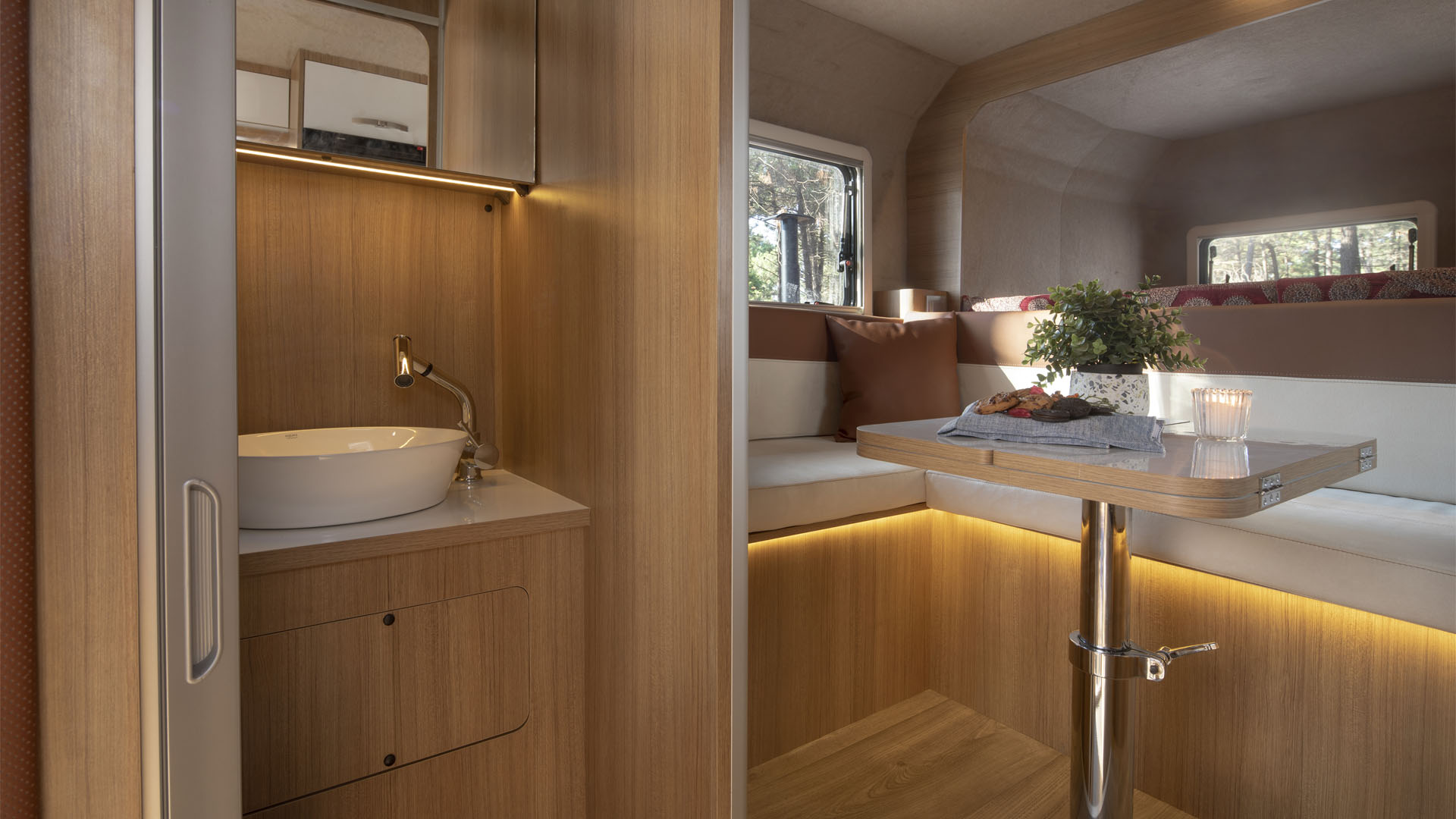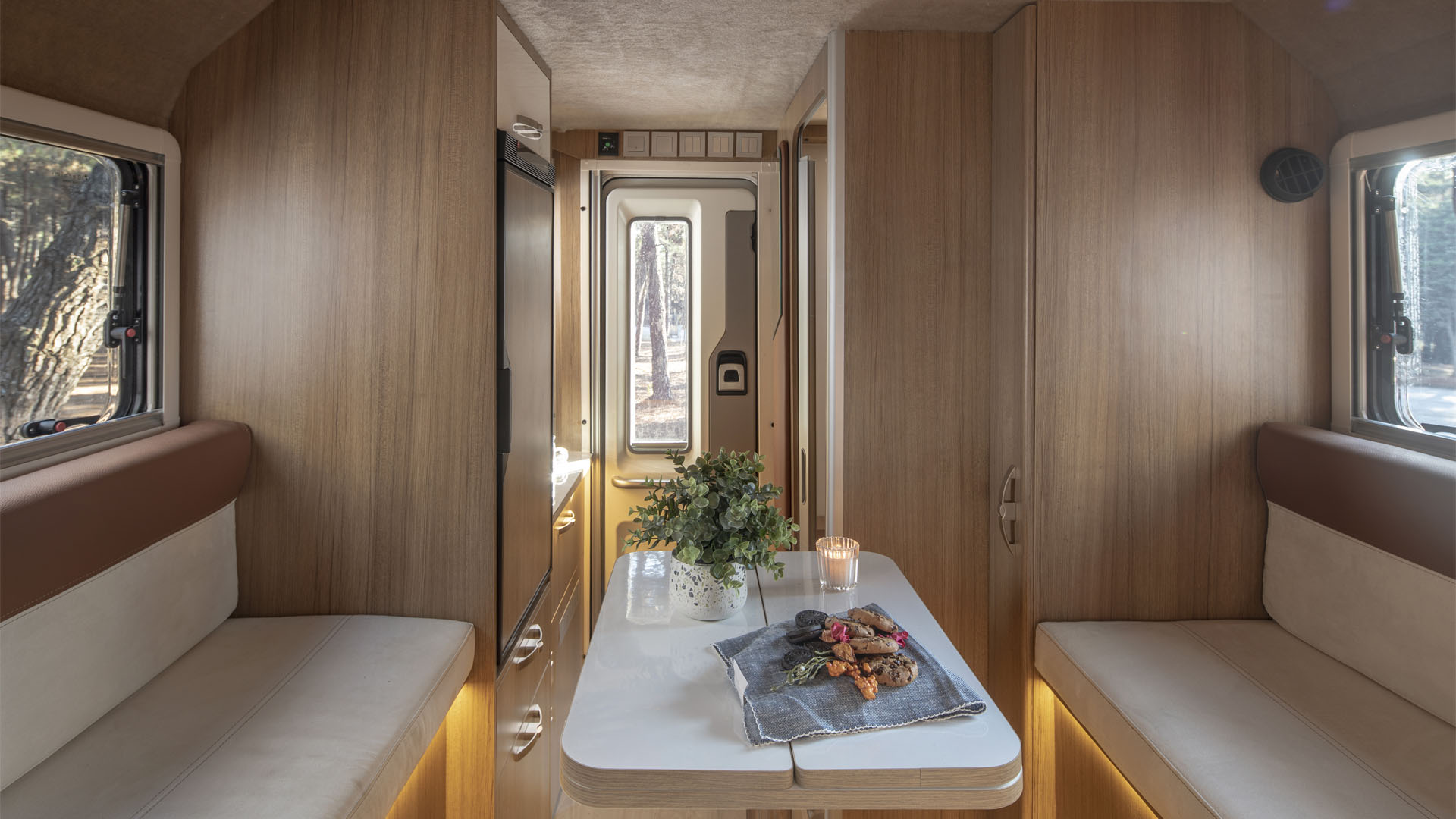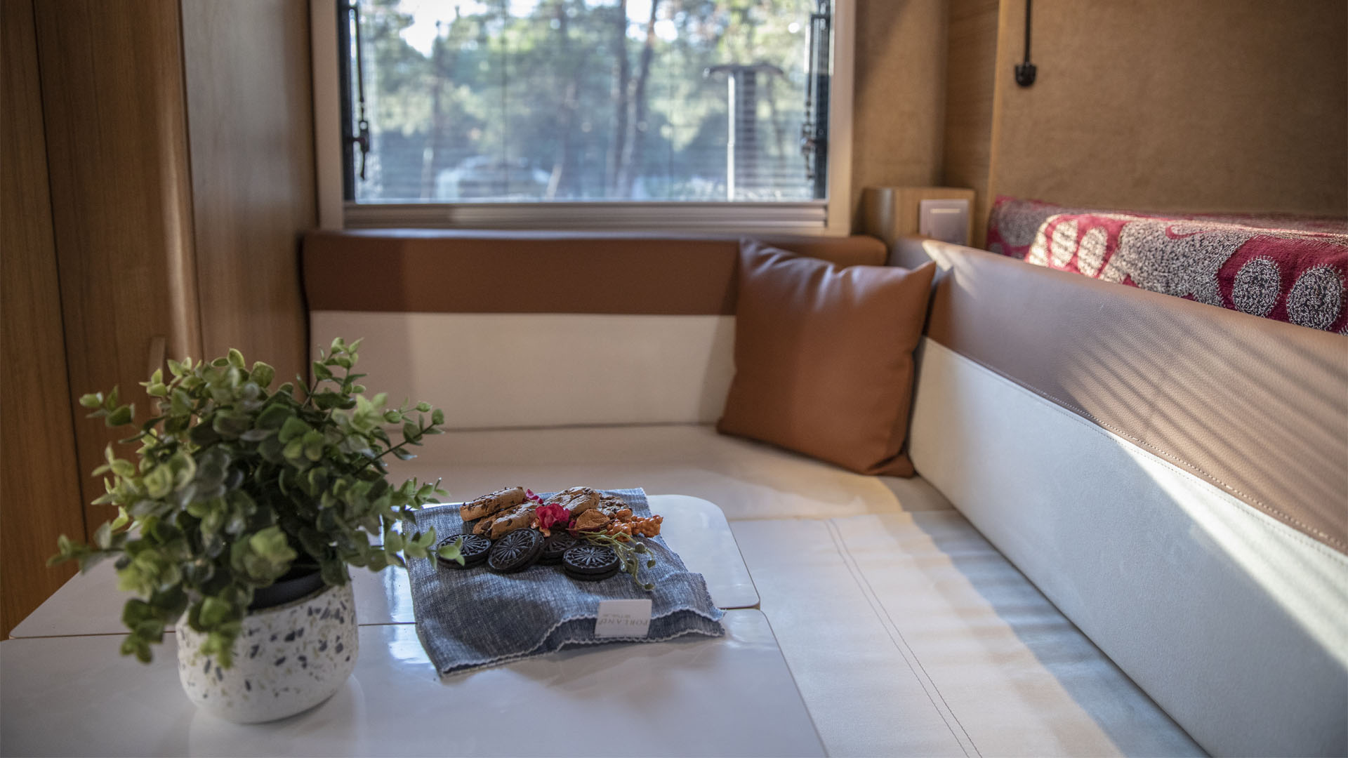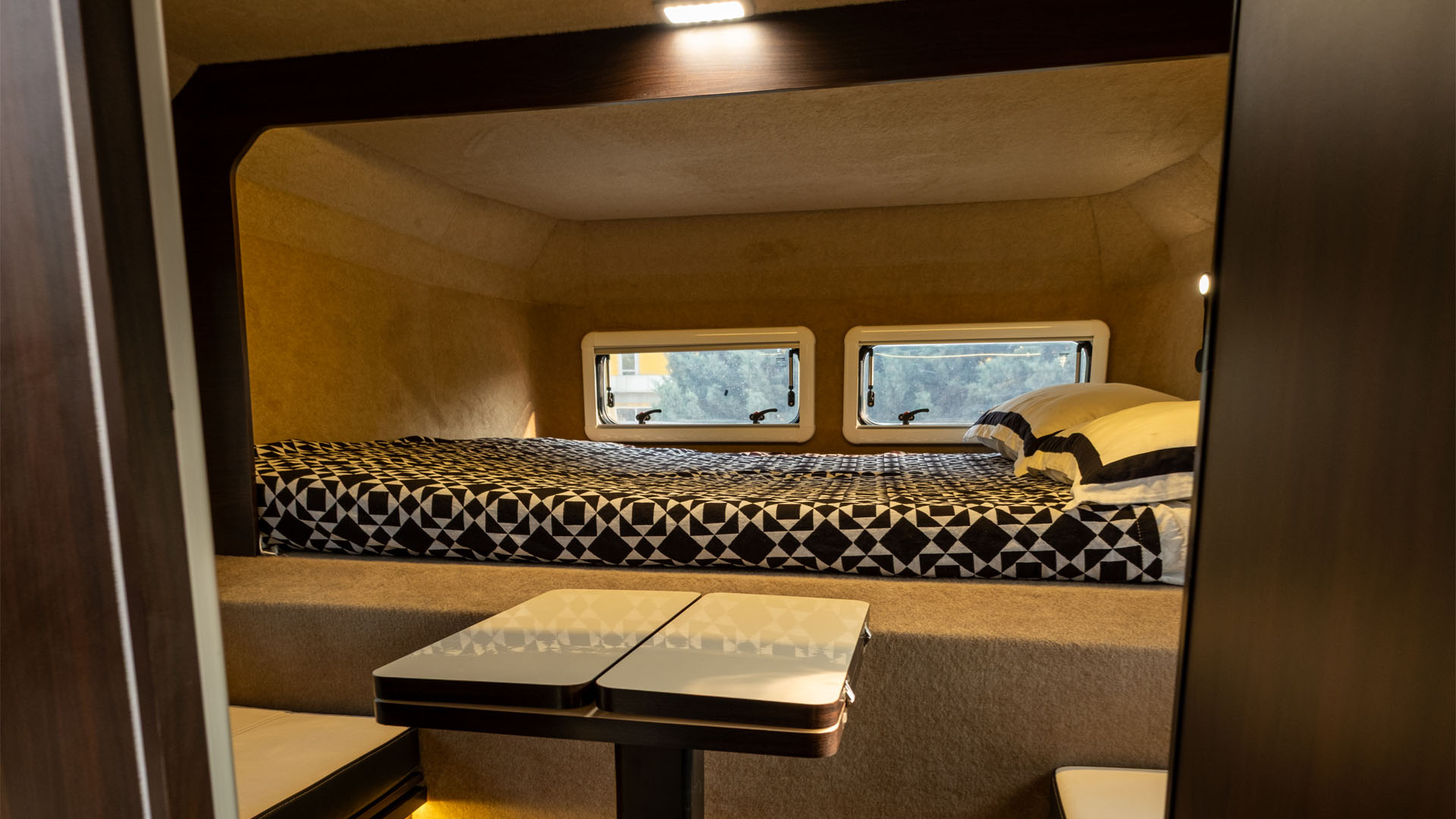 • Großzügiger Innenraum mit einer gemütlichen Sitzecke, die zu einem Einzelbett umgewandelt werden kann.