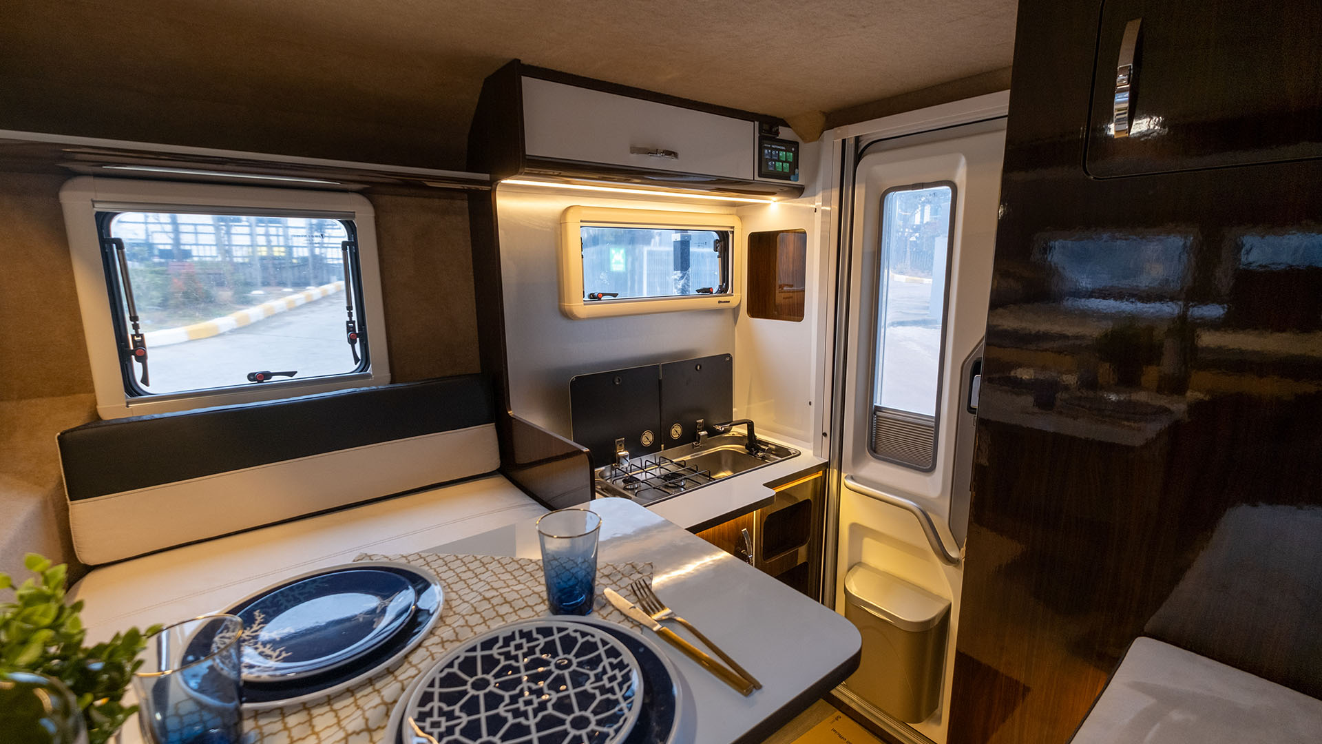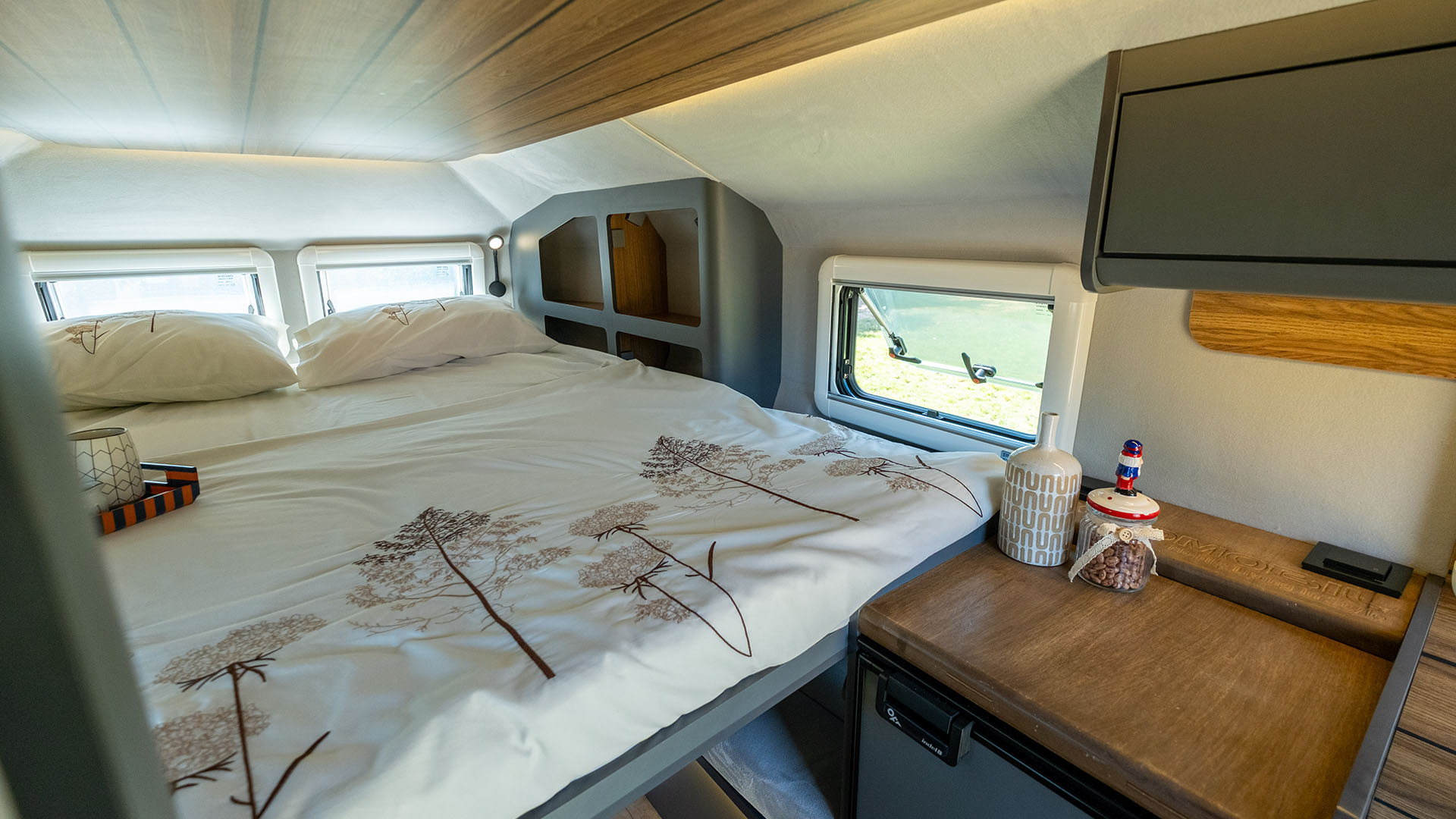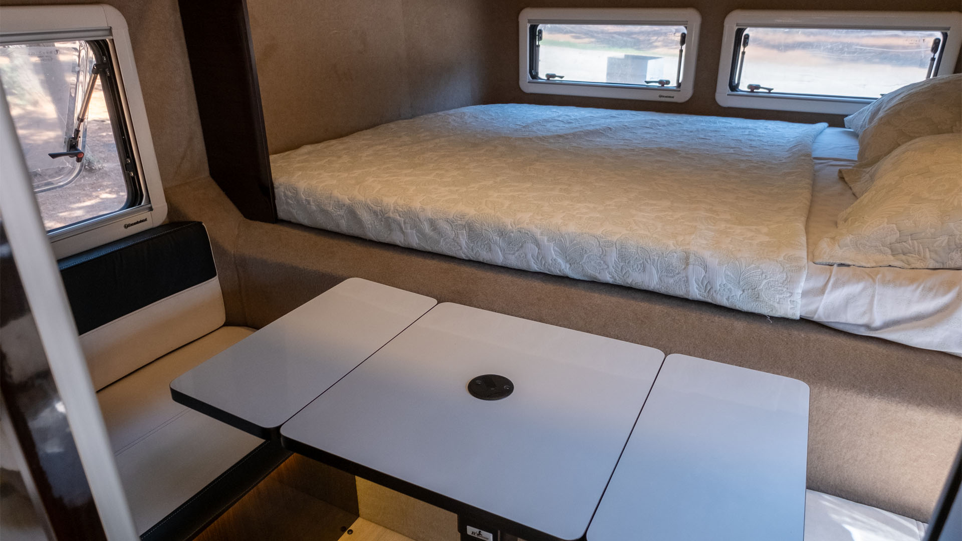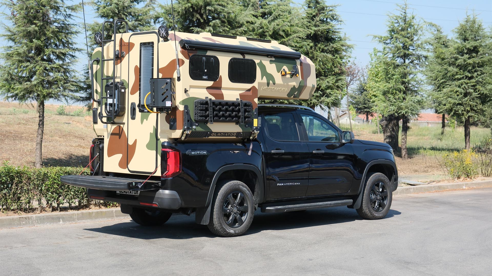 Easy mounting system of Gladiator EU Size camper keeps your pick-up truck for your daily use, while going for adventurous travels in all seasons becomes simple; experience the comfort of a hotel room even in the toughest terrains.